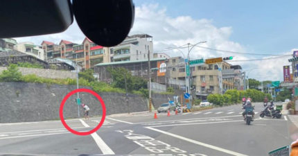 影/老伯伯卡路中快被撞!外送員秒停機車「一肩扛起」