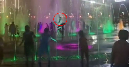 影/噴泉廣場玩水!水柱一噴小孩「空中連翻3圈」
