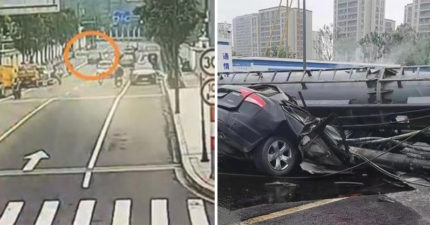 影 / 巨大打樁機倒塌「壓爛轎車奪命」 民眾嚇壞:像設計好的