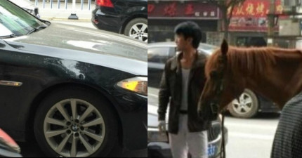 這名男子用最悲慘的方式學到如果馬擋住了你的車,絕對不要對他按喇叭!