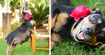 主人請攝影師幫忙拍狗媽媽孕照,狗狗擺出的一系列「超撩人姿勢」已經把其他人類孕婦的照片全都趕盡殺絕了!