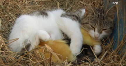 這隻住在農場的貓咪剛生了一窩小貓,但懷裡這些寶寶有幾隻的叫聲卻是…「呱呱」?!