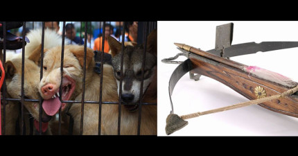 中國這名偷偷賣狗肉的集團老大想展示如何用十字弓殺狗,結果大腿一陣刺痛之後…集團就整個瓦解了。