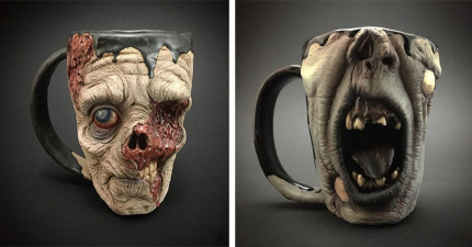 他親手打造出的「末日殭屍馬克杯」讓很多網友被嚇到但超愛,#3讓我絕對不敢拿在手中…
