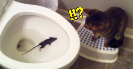 這隻貓咪一開始發現「從馬桶爬出的老鼠」時一動也不動,回過神後的超霸氣舉動都被主人拍下了!