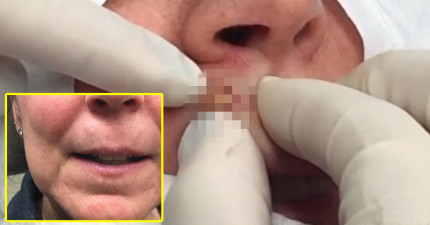 醫生一眼就看出她的嘴唇上頭「藏著世上最大顆黑頭粉刺」,果然手術刀一劃開就翻到一顆…”蟑螂蛋”。