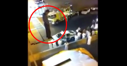 這名男子站在高處鬧自殺,於是一旁消防隊員靈機一動竟然就直接給他一腳!