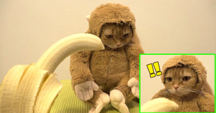 主人幫這隻「喜歡吃香蕉的貓咪」穿上猴子裝,當主人拿著香蕉靠近時…網友完全被萌翻了!