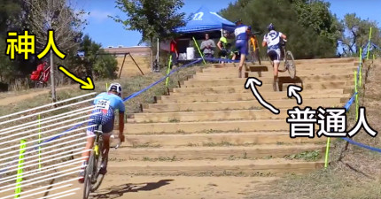 這就是神人在騎腳踏車「遇到上樓梯時」和我們這些平凡人的差別。