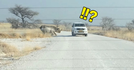 這隻2噸重的犀牛本來還在發呆,結果下一秒突然全力朝這台車暴衝的恐怖景象真的太爆炸驚悚了!