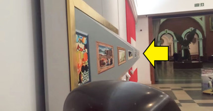 這幅3D立體畫從側面看並沒有什麼特別,但當你「站在正面見到它的驚奇真面目」時就會被吸進去了。