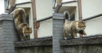 這隻貓咪不怕痛地走在「擺滿刺刺墊的圍牆」,這原來是最淒美的愛情故事啊!