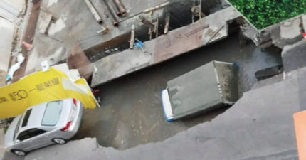 台南市區「冒出超巨大天坑」 小貨車「慘遭活吞」恐怖畫面曝