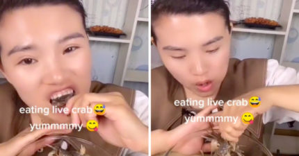 女網紅直播生吃活螃蟹 「邊嚼邊抓回碗裡」不怕夾嘴