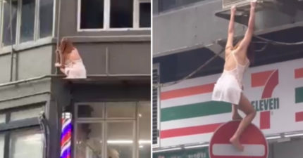 「金髮性感女」飛簷走壁路人急接住!身份曝光眾人傻眼