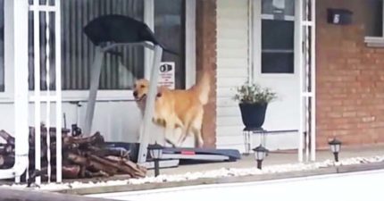 影/下大雨不能散步…狗狗只好「狂跑跑步機」洩憤