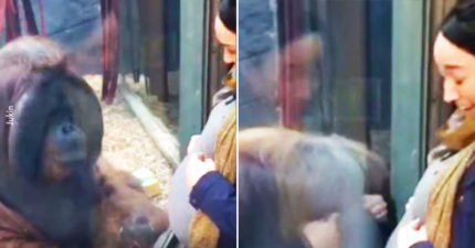 母猩猩「想摸孕婦」還親肚子 「母愛畫面」讓網嘆:太殘忍了