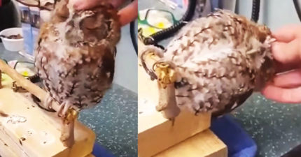 貓頭鷹「摸上癮」爽到翻過來 「偶是不是壞掉了」表情超好笑