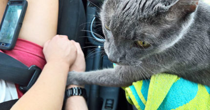 最後一次去獸醫院…貓皇「緊抓奴才手」安慰他:別害怕