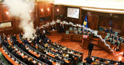 影/比台灣立委還兇!科索沃國會驚見「催淚彈」 警衛「超習慣」默默戴防毒面具
