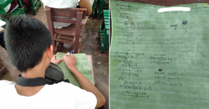 窮困男童筆記「寫在香蕉葉」上 超鼻酸「好學背影」網友狂捐物資、獎學金!