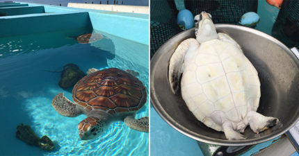海洋中心曝光「小海龜量體重」超萌畫面 無言臉「放棄治療」融化一堆網友!