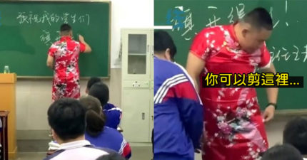 影/高考壓力超大!男老師「穿旗袍娛樂學生」還開放剪碎衣服