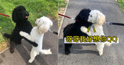 散步巧遇「失散妹妹」興奮狂跳 2隻貴賓「激動抱抱」畫面超感動❤