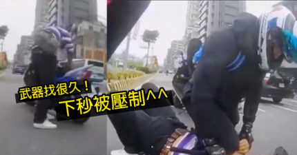 影/甩棍男載妹「攔車叫囂」被健身教練反制 妹子嬌瞋:幹嘛打他~