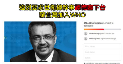 連署要「譚德塞下台」人數突破50萬 細數「無腦作為」呼籲:台灣請加入!