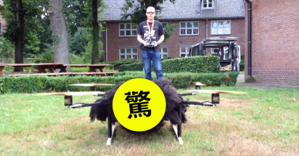 這男人把「鴕鳥屍體」改造成一架巨型遙控飛機,起飛的模樣真的太驚悚壓迫了。