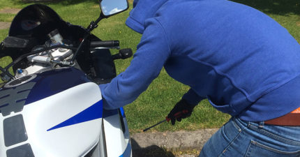 他看到這名女竊賊想偷他安全帽,就想出妙計上前問「你這台車要賣多少?」