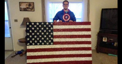 老師聽到他美國國旗做了50個小時還以為很爛,當一近看看到「4466個超猛細節」後快感動到哭了!
