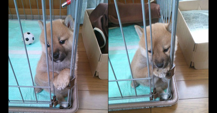 主人看到柴柴整隻靠在籠子角落還以為她想出來,直到看到下一張「超萌的爆笑姿勢」才超慚愧!