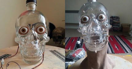 這名藝術家「幫水晶頭骨伏特加酒瓶加上完整五官肌肉」,做到一半的肌肉組織看起來真的太驚悚了!