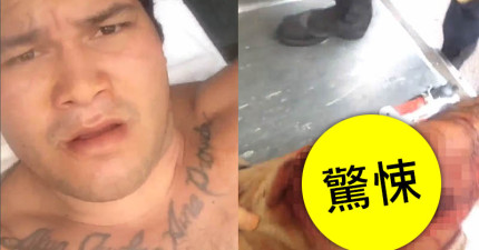 这名男子的腿被鲨鱼啃伤都能看到骨头后,当下第一个反应会让你白眼翻到后脑杓看到后面的人。