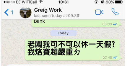 昨晚喝掛的他一早傳訊給老闆騙「不舒服請假」 老闆秒看穿超蠢破綻「嗆爆」