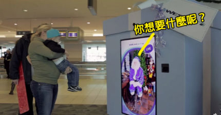 飛機乘客登機前被螢幕上聖誕老公公問到願望,當下機到輸送帶時全都感動到哭!
