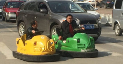 中國「公路最狂大叔」開碰碰車上路,網友:「秋名山怎麼走?」
