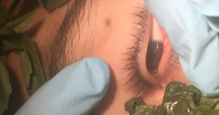 男孩眼睛紅腫一個月吃藥也無效,直到醫生用九層塔吸引並用夾子「啵」一聲夾出一條…