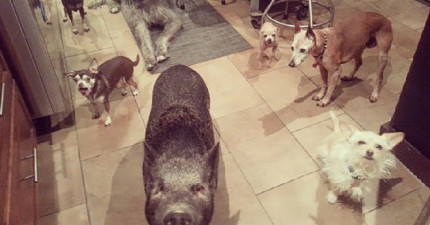 他收養了一隻豬但擔心他會跟家裡狗狗處不來,結果證明他真的大錯特錯!