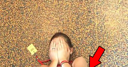 她走進房間看到地板的色調後,就立刻躺下合拍的照片讓百萬名網友叫好!