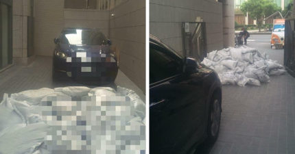 外車亂停社區車道 他搬「180包沙包陣」封印最後卻害到自己