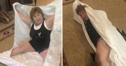 影/大媽教超方便「懶人摺床單」方法 躺下滾一滾10秒摺好豆腐乾!