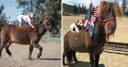 超會騎!狗狗小馬超麻吉 緊抓馬背奔馳跳躍:駕~駕~