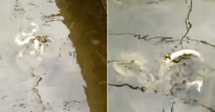 蛇被丟進水蛭池中凌虐,張嘴露獠牙掙扎「10秒後翻白肚慘死」旁邊人拍手歡呼:太好看了!