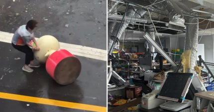 影/颱風狂掃!7-11店員拚命擋門「3人全彈飛」店像被轟炸 她奮力拖回逃家OPEN將