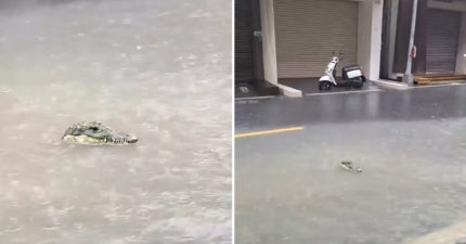 影/颱風天拍高雄淹水「一隻鱷魚飄過」 鏡頭放大…萬人一看吃驚
