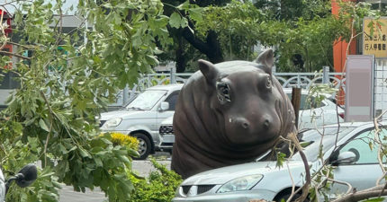 山陀兒狂掃!一早出門傻眼「車被河馬壓住」 近看欲哭無淚