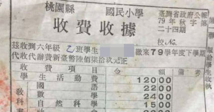 翻到民國79年舊收據 網見「國小學雜費」總額驚:還含午餐